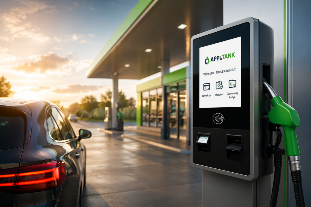Az App&Tank egy olyan rendszer, amely a gyakorlatban is működő modellt kínál. A megoldás középpontjában a terminálos fizetés áll, amely minden ügyfél számára elérhető, és nem igényel külön alkalmazást.